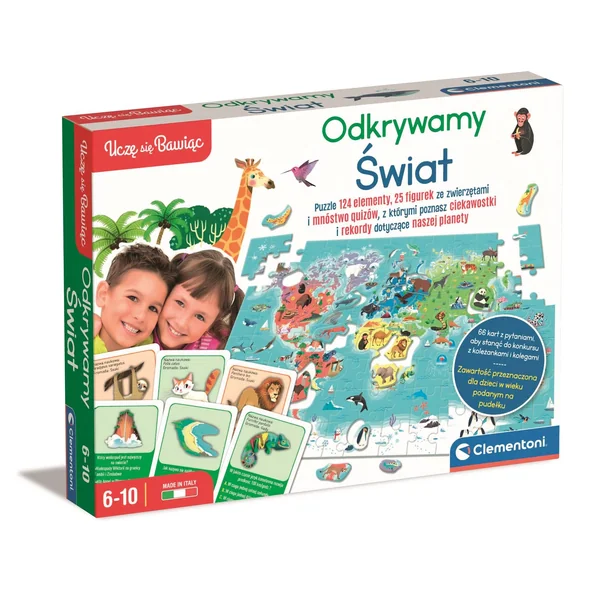 Clementoni ODKRYWAMY ŚWIAT Układanka PUZZLE GRA Mapa ŚWIATA Zwierzęta Quiz