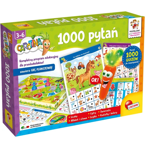 Lisciani - Carotina 10 gier to zestaw edukacyjny składający się z 10 różnorodnych gier, które wspierają rozwój kreatywności oraz zdolności rozwiązywania problemów. Interaktywna postać Carotiny wprowad...