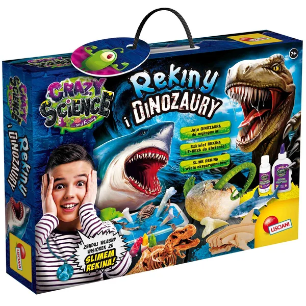 Odkryj fascynujący świat rekinów i dinozaurów z zestawem naukowym Lisciani - Crazy Science - Rekiny i dinozaury. Zestaw umożliwia odkopywanie jaj dinozaurów, budowanie szkieletu T-Rexa oraz eksploracj...
