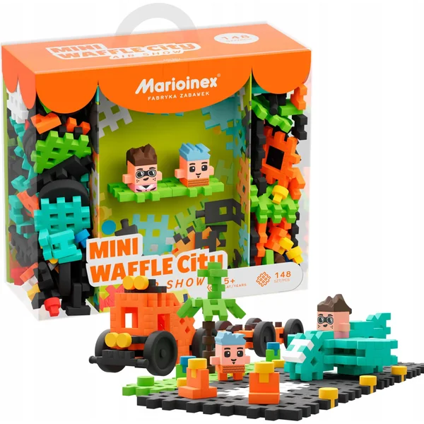 Marioinex - Klocki konstrukcyjne Waffle mini City Pokaz Lotniczy to zestaw 148 elementów, umożliwiający budowę pasu lotniczego oraz pojazdów związanych z lotnictwem. W zestawie znajdują się dwie figur...
