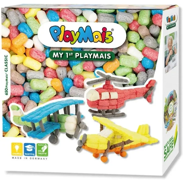 PlayMais Moje pierwsze latanie to ekologiczne klocki ze skrobi kukurydzianej dla dzieci od 3 lat. Zestaw umożliwia budowę figur związanych z maszynami latającymi, rozwijając kreatywność i zręczność ma...