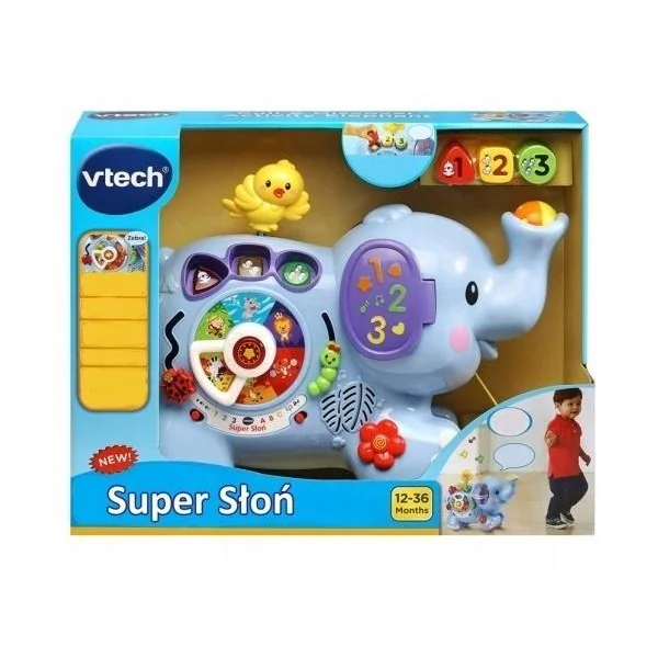 Super Słoń VTECH marki Trefl to interaktywna zabawka edukacyjna dla dzieci od 12. miesiąca życia, rozwijająca koordynację ręka-oko, motorykę małą oraz obserwację. Wymiary: 46 x 35 x 16 cm. Zawiera pon...