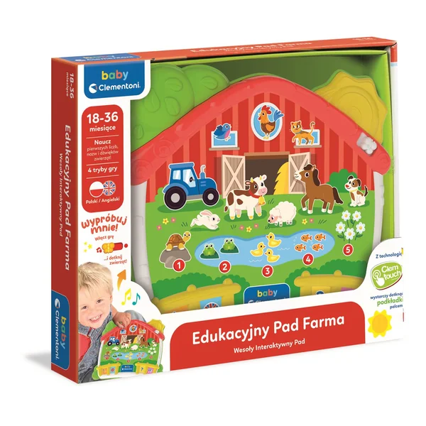 Pad Farma 50386 od marki Clementoni to interaktywny panel edukacyjny, który oferuje cztery różne propozycje zabaw. Dzieci uczą się słów, liczb oraz odgłosów zwierząt gospodarskich poprzez zabawne zada...