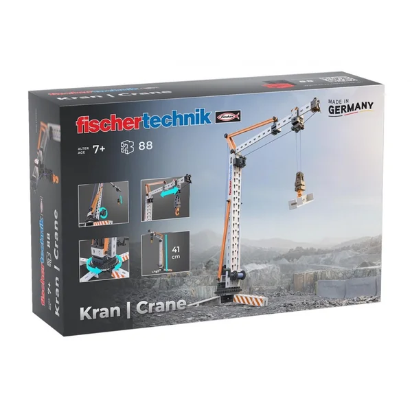 Zestaw konstrukcyjny fischertechnik Crane to klocki do samodzielnego montażu ruchomego dźwigu z obracającymi się elementami i ruchomym wysięgnikiem. Przeznaczony dla dzieci od 7 lat, rozwija umiejętno...